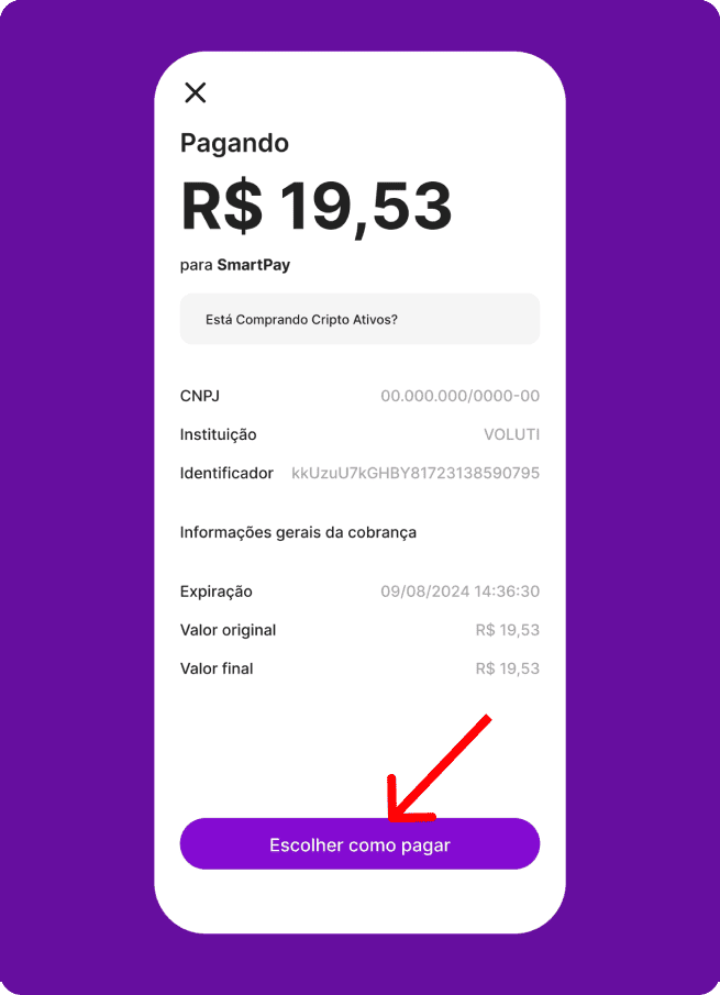 Cole o "Código PIX" e clique no "Botão de Seta" para avançar.